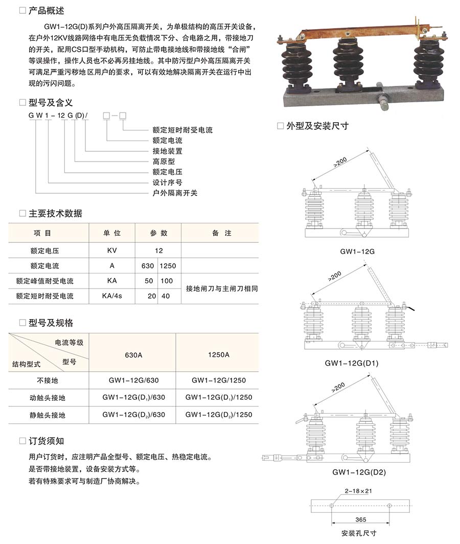 (H)GW1型戶外交流高壓隔離開關